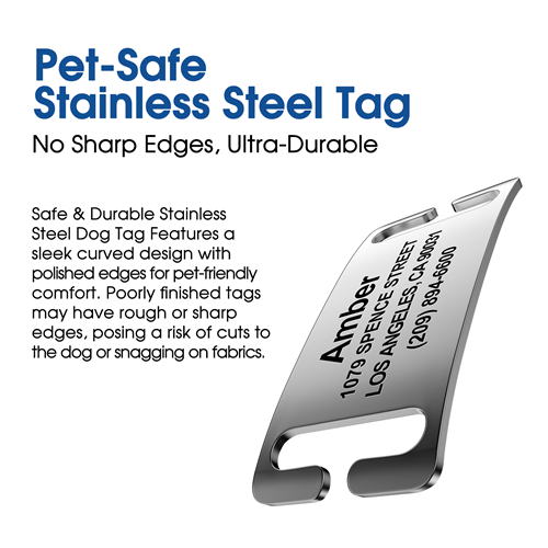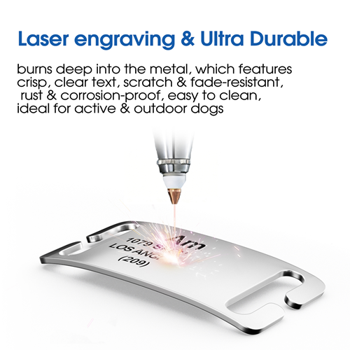 • Ultra durable and Ample Space. It’s highly resistant to rust, corrosion, and daily wear, ensuring your pet’s information stays clear and readable for years. Ample space to engrave your pet’s vital information, typically including Name, Phone Numbe and address.