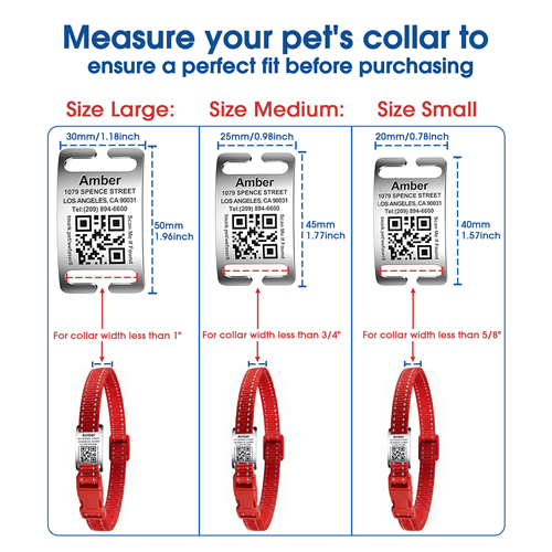 • Matte Finish & Size: Large (fits 1 inch wide collars); Small (fits 5/8 inch or narrower collars), and matte finish ensures the QR code works flawlessly.