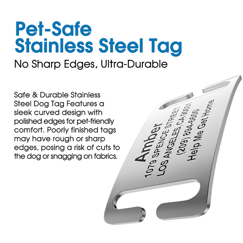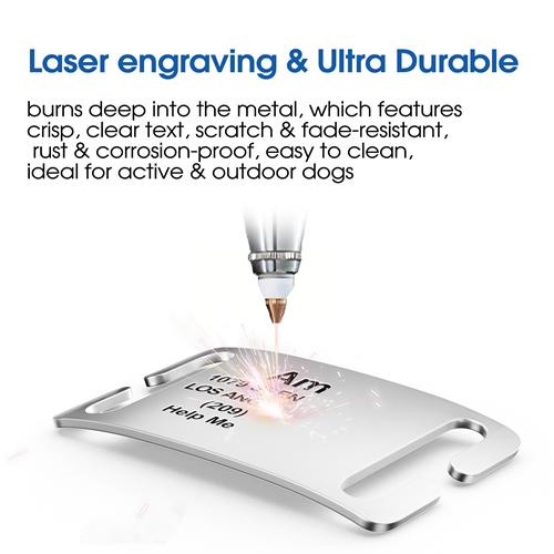 • Ultra durable and Ample Space. It’s highly resistant to rust, corrosion, and daily wear, ensuring your pet’s information stays clear and readable for years. Ample space to engrave your pet’s vital information, typically including Name, Phone Numbe and address.