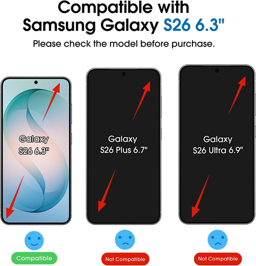 • Only Compatible with Samsung Galaxy S26 6.3" Specially designed ONLY for the Samsung Galaxy S26 6.3" 2026 Screen Protector. Please check your phone model before buying this tempered glass screen protector.