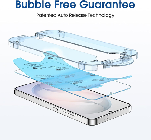 • Auto-Alignment Installation within 30 Seconds! Say goodbye to manually misalignment, the samsung galaxy S26 6.3"screen protector is embedded in a plastic frame that fits perfectly over your phone. Set the frame on your phone, swipe down the middle, and done! Perfect installation within 30 seconds! Watch our Installation Video to see how easy it is to use our Innovative OneTouch Auto-Alignment Screen Protector.
